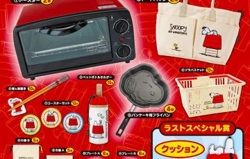 イチオシはスヌーピーのコーヒーメーカー。だけど、クリアボトルやマグカップもほしい。いやいやマットが当たってもいいなぁ。ポーチやトート、バインダーも、ビーグルスカウト柄だしアタリ◎