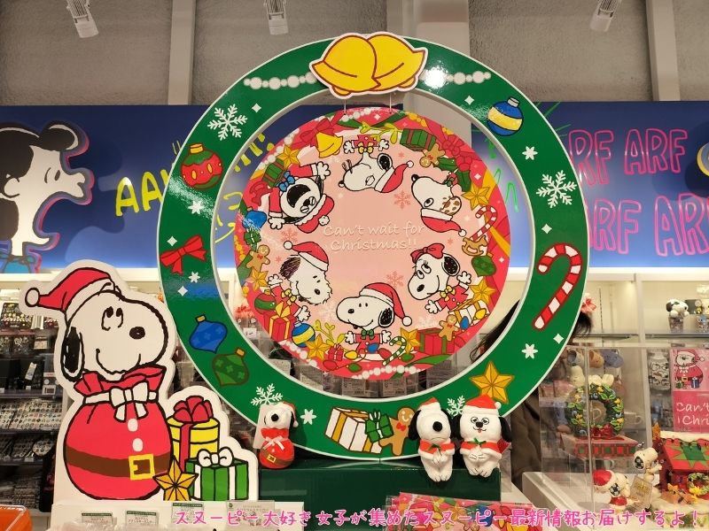 スヌーピーとスヌーピーのきょうだいたちがリースの中にいたり、サンタ服を着たちょっこりさんスヌーピーとオラフが座っててかわいい。